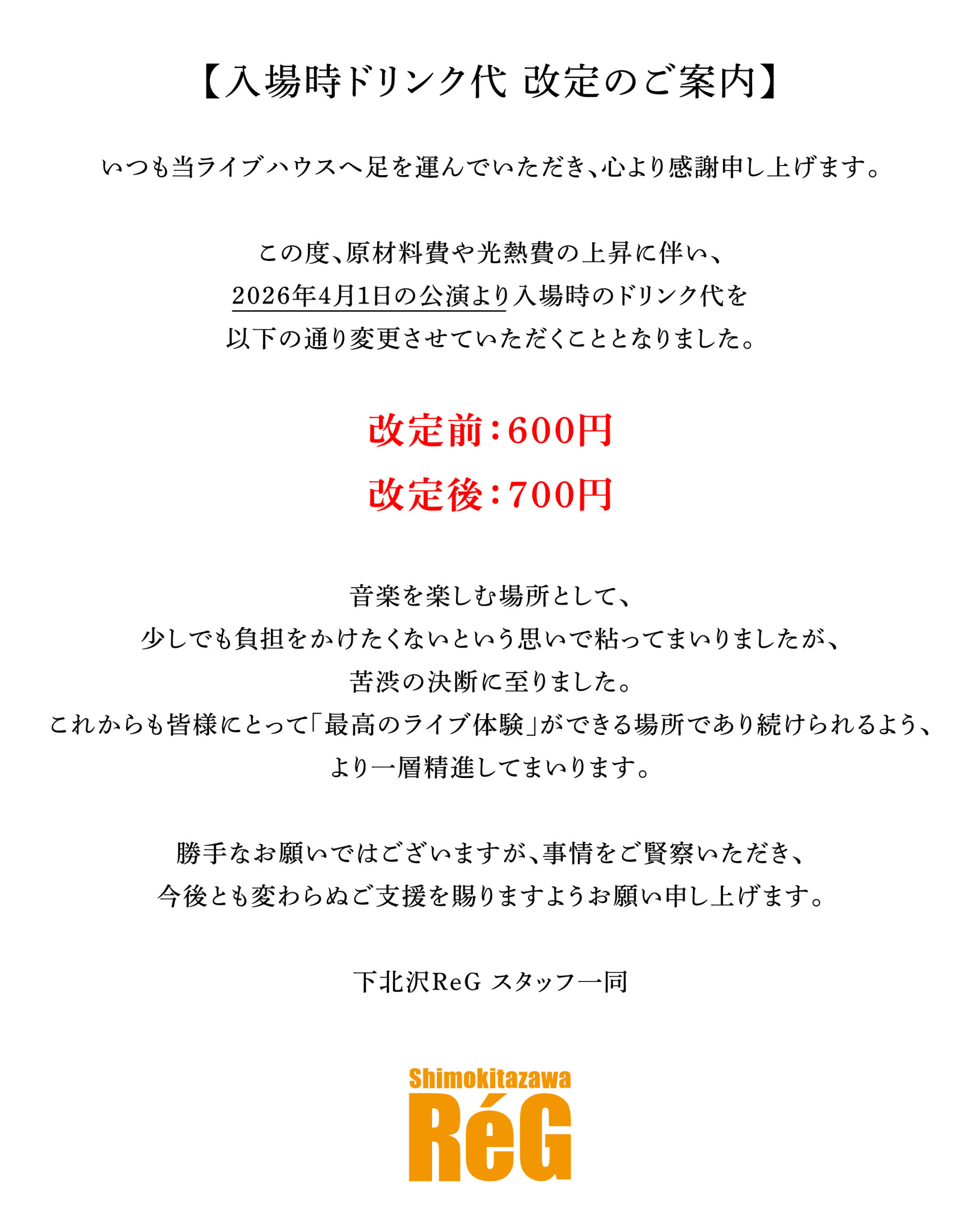 【入場時ドリンク代 改定のご案内】 いつ… 続きを読む: 入場時ドリンク代 改定のご案内(2026年4月公演より) - 2026年、あけましておめでとうございます!
